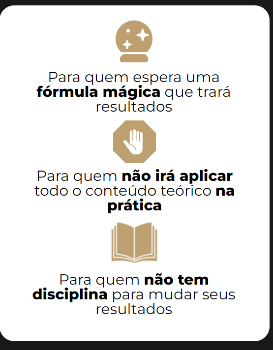 Se, em até 7 dias, você quiser seu dinheiro de volta, você poderá ser reembolsado, sem burocracias ou justificativas. Isso serve para garantir sua satisfação e segurança com TUDO que for entregue.